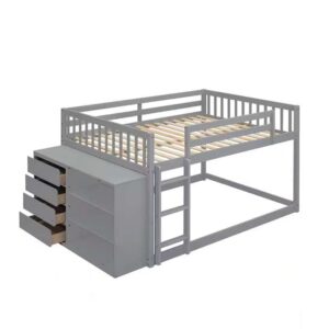 Gray Full Over Full Bunk Bed with 4 Drawers and 3 Shelves