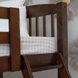 The deep brown finish brings warmth and elegance to any space, blending effortlessly with both traditional and contemporary décor. Whether paired with colorful bedding for a lively kids’ room or dressed in neutral tones for a more refined look, this bunk bed complements a variety of styles and color schemes.